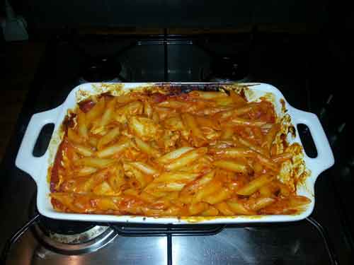 Despite this, I was recently asked why I do not take more pictures of food (though this was also coupled with the statement that I should be taking a lot more photos in general of everything to share with others). So to remedy that situation, here is a picture of pasta I had in the oven one day, posted online for all to enjoy;